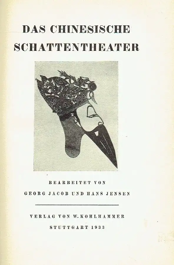 sehr guter Zustand, geringe Gebrauchs- und Alterungsspuren: Einband leicht verschmutzt - Papier teils etwas vergilbt, aber Seiten sauber und ordentlich, Entstehung und älteste Geschichte des Schattentheaters - Das neu erschlossene Material - Der Spielplan - Chinas Geschichte in Schattenspielform - Ein soziales Schattenspiel - Bürgerliche Szenen und Schwänke - Die Figuren - Das Spiel - Der ethische Gehalt - Die Aufgaben der Zukunft - Schattentheater als Quelle für die Volkskunde - Nachträge zur periodischen Bibliographie des Schattentheaters im Morgenland - Anhang 1: Das Wortspiel im chinesischen Schattentheater - Anhang 2: Die Spinnennetzhöhle (erstmalige Übersetzung dieses Schattenspiels aus dem Stoffkreis der "Reise nach dem Westen" ins Deutsche von Hans Jensen), Leinen, ca. 17 x 24,5, 130 Seiten mit 11 Bildern
