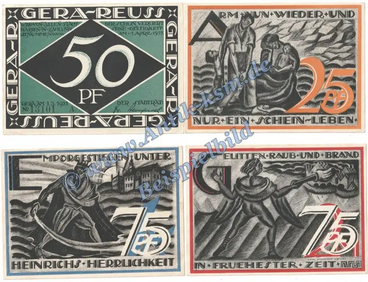 Gera , Notgeld Set mit 4 Scheinen in kfr. M-G 420.3 , Thüringen 1921 Seriennotgeld