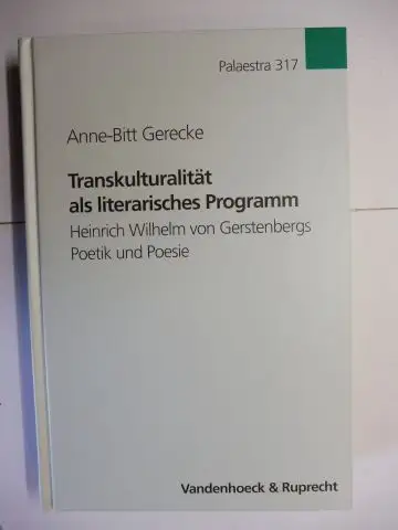 Gerecke *, Anne-Bitt: Transkulturalität als literarisches Programm - Heinrich Wilhelm von Gerstenbergs Poetik und Poesie. + AUTOGRAPH *. PALAESTRA Untersuchungen aus der deutschen und skandinavische Philosophie Band 317.