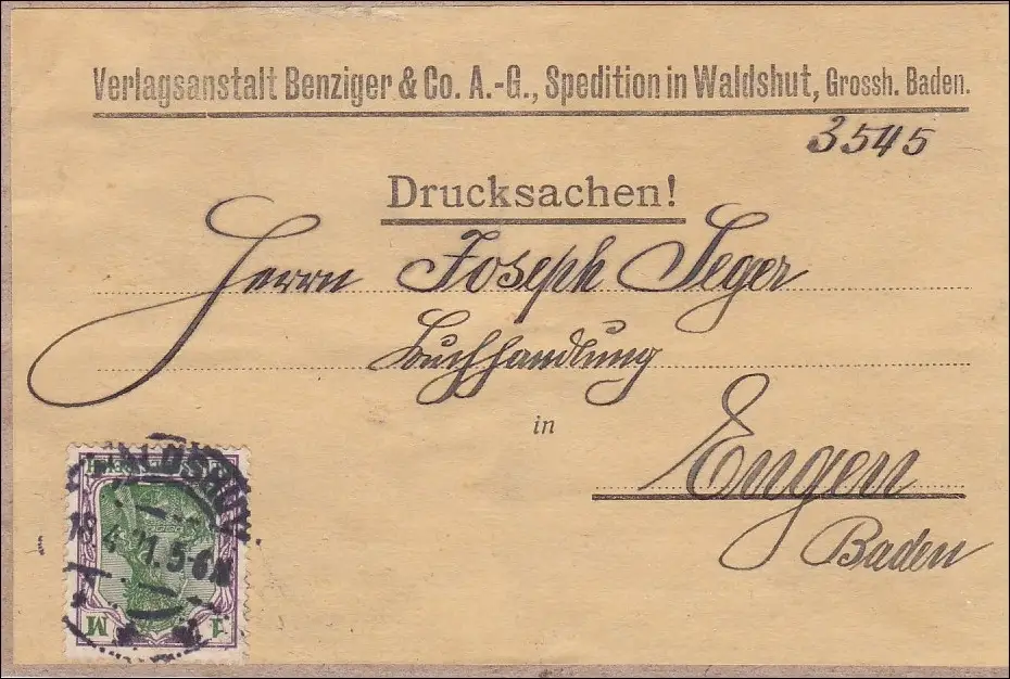 Germania: dossier d'impression 1921, partie de l'adresse de Waldshut 1921