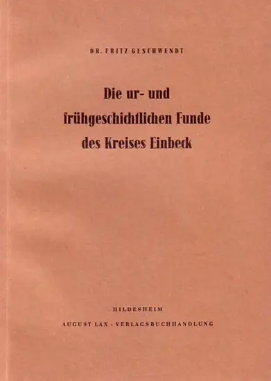 Geschwendt, Fritz: Die ur- und frühgeschichtlichen Funde des Kreises Einbeck.