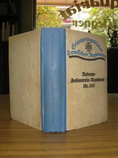 Titel: Geschichte des Res.-Infanterie-Regiments Nr. 210 und seiner Frenzschutz-Formationen ( 1914 - 1920 ). Nach den im Quellen- und Literatur-Verzeichnis aufgeführten Vorlagen geschrieben. (= Erinnerungsblätter deutscher Regimenter. Die Anteilnahme der Truppenteile der ehemaligen deutschen Armee am Weltkriege bearbeitet unter Benutzung der amtlichen Kriegstagebücher 231. Band )