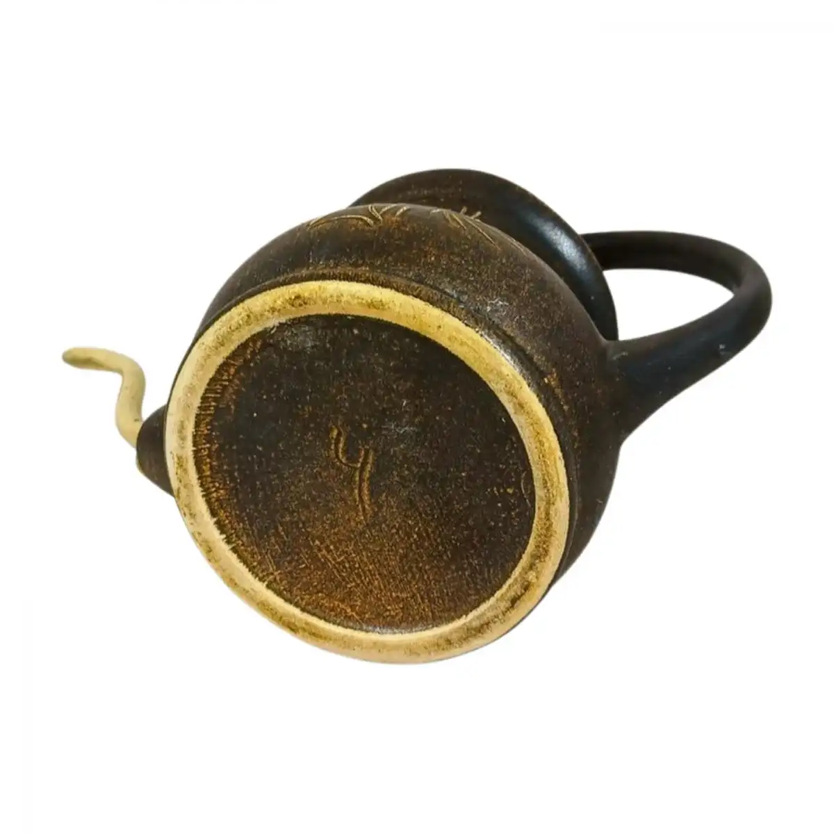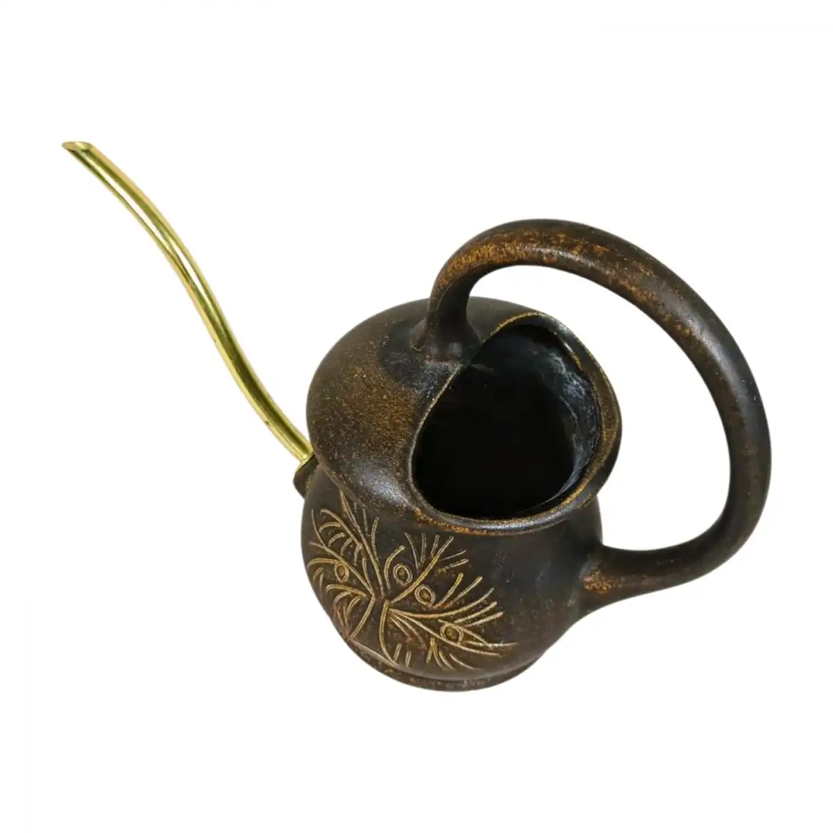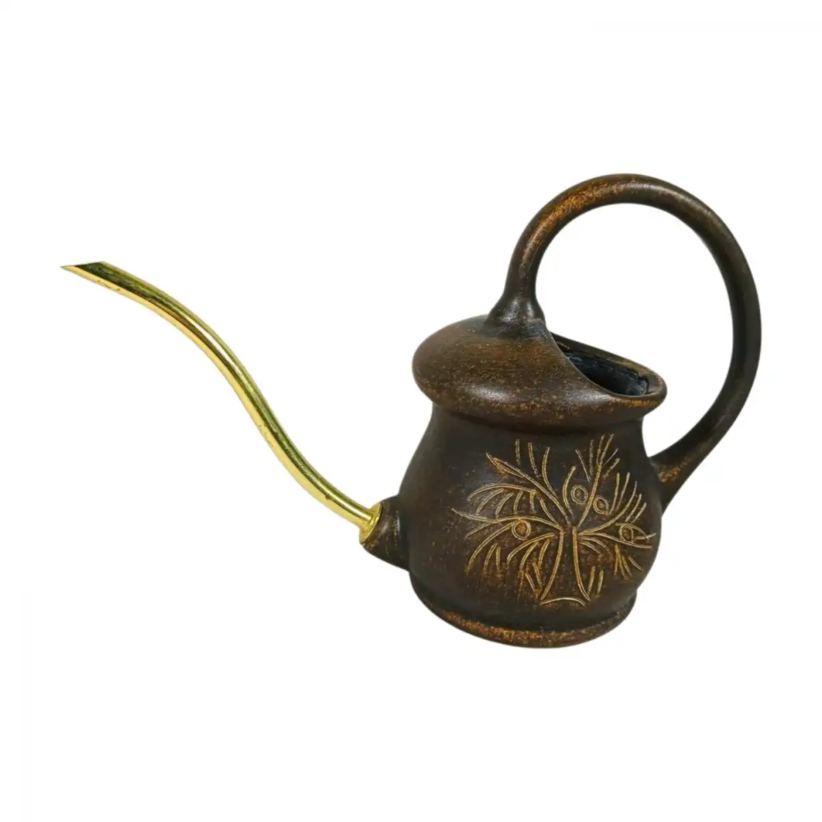 Keramik-Gießkanne aus der Mitte des 20. Jahrhunderts mit Messingausguss, vereint rustikale Eleganz mit dekorativem Design. Sehr guter Zustand mit einigen mineralischen Ablagerungen im Inneren durch Gebrauch. Funktional für die Pflanzenpflege und ideal als dekorativer Akzent für Haus oder Garten.