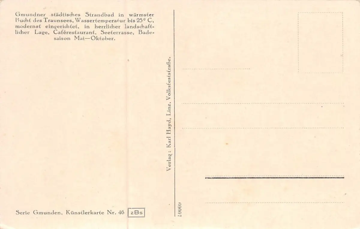 Gmundner Städt. Strandbad mit Blick gegen den Traunstein K. Hayd Postkarte AK
