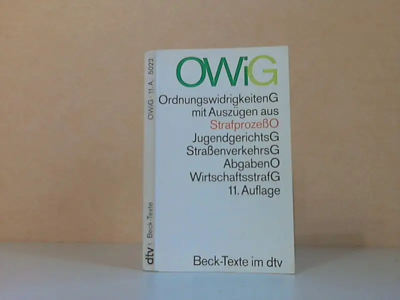 das Buch stammt aus einer Haushaltsauflösung, gebräunt, fleckig, Einbandkanten mit Bestoßungen, Namenseintrag, aus dem Inhalt: Abkürzungsverzeichnis - Einführung von Ministerialrat a. D. Dr. Erich Göhler - 1. Gesetz über Ordnungswidrigkeiten (OWiG) - 1 a. Einigungsvertrag, Maßgaben zum OWiG 1 b. Verordnung vom 22. März 1984 zur Bekämpfung von Ordnungswidrigkeiten - OWVO -/DDR (Auszug) - 2. Einfuhrungsgesetz zum Strafgesetzbuch (Auszug) - 3. Strafprozeßordnung (StPO) (Auszug) - 4. Jugendgerichtsgesetz (Auszug) - 5. Gesetz über die Entschädigung für Strafverfolgungsmaßnahmen (StrEG) (Auszug) - 6. Verwaltungszustellungsgesetz (VwZG) (Auszug) - 7. Straßenverkehrsgesetz (Auszug) - 8. Abgabenordnung (AO 1977) (Auszug) - Gesetz zur weiteren Vereinfachung des Wirtschaftsstrafrechts (Wirtschaftsstrafgesetz 1954) - Sachverzeichnis. Beschreibung vom Antiquariat Ardelt 2c5 ISBN-Nummer: 3423050225 Antiquariat Ardelt