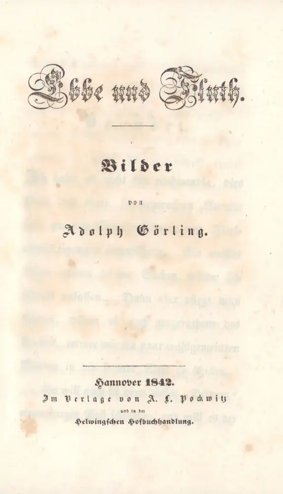 Görling, Adolph: Ebbe und Fluth. Bilder. (Novellen, Erzählungen, Aquarelle, Mährchen).