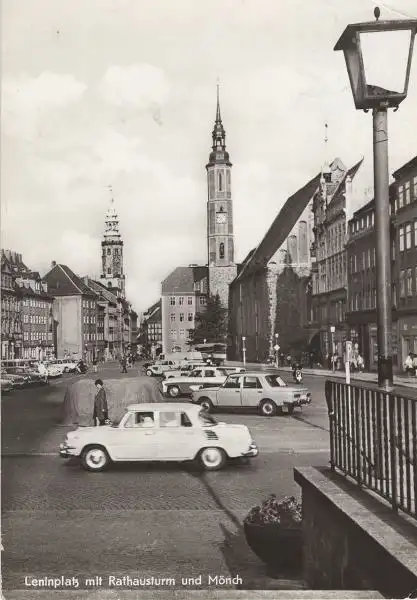 Görlitz - Leninplatz mit Rathausturm und Mönch