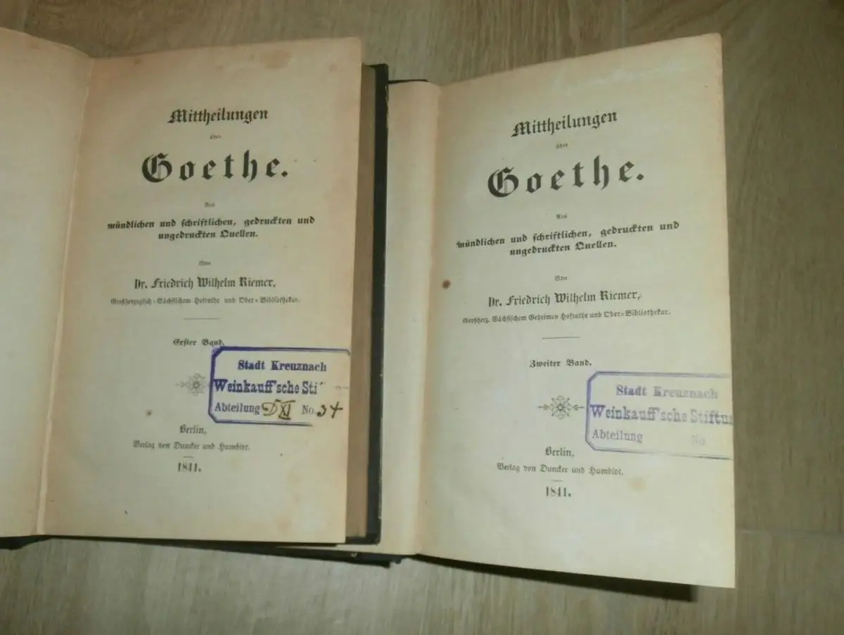 Goethe , 1841, Franz Weinkauff Sammlung , mit Autograph , 2 Bände , Kreuznach !!