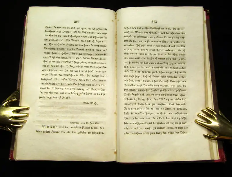 Einband etwas berieben und bestoßen, Ecken knickspurig. Papier leicht gebräunt, stellenweise etwas braunfleckig. Seltene und dekorativ gebundene Ausgabe