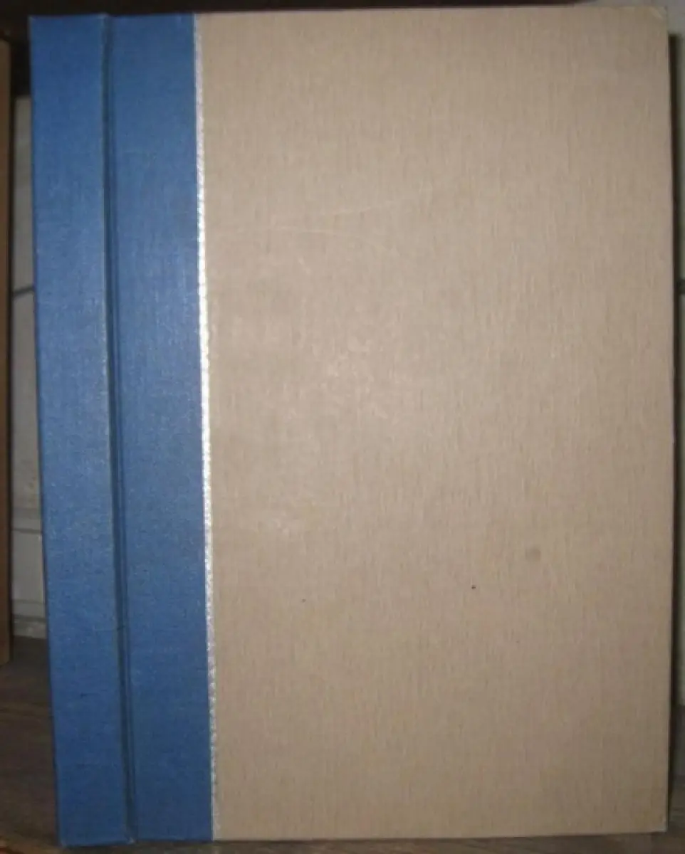 Freie Beschreibung: 29,3 x 19,8 cm. Blaue Halbleinenkassette, seitlich in Silber gefasst, mit Extra-Abdeckungspappe für die Kassette und Pergamentschnalle. Lose inliegend: 1 w. Bl., Titelblatt, 77 (1) Seiten, 1 w. Blatt. Die Seiten sind einseitig bedruckt mit insgesamt 36 Versen und einem 2seitigen Nachwort. Des Weiteren 37 Blätter mit jeweils einer handsignierten Radierung (7x5 bzw. 4x5 cm groß), diese liegen jeweils zwischen zwei Versblättern. Texte und Radierungen in Blaudruck. Die Blätter sind sauber und frisch. Vollständiges, kollationiertes Exemplar in sehr gutem Zustand