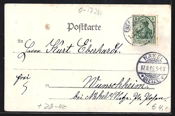 alte Ansichtskarte, gelaufen 1906, Eckknick li. unten, guter Zustand