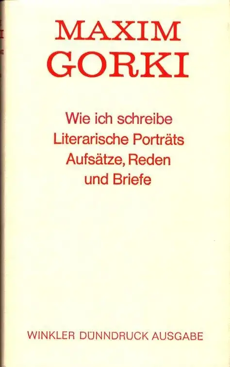 Gorki, Maxim [Gorkij, Maksim]: Wie ich schreibe. Literarische Porträts, Aufsätze, Reden und Briefe. (Aus d. Russ. übersetzt von Erich Boehme, Gudrun Düwel, Barbara Kerneck u. a. Mit einem Nachwort von Helene Imendörffer).