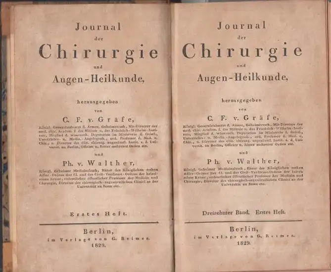 Gräfe, Carl Ferdinand von / Walther, Ph. v. (hrsg.). - C.C. Hueter / F.A.v. Ammon / Galenzowski und v. Andrejewskiy / Friedrich Bird / Eduard Gräfe / D. Schwarz / Dr. Branco / Kreiswundarzt Schütte (Autoren): Journal der Chirurgie und Augen-Heilkunde. Dre