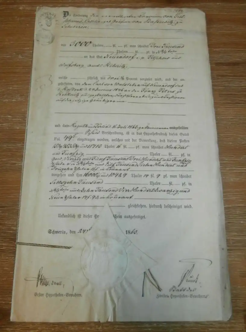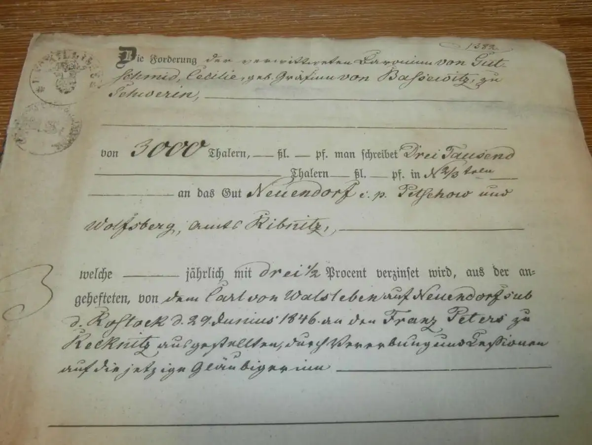 Graf von Bassewitz auf Raguth und Perlin , 1846-1863 , von Walsleben auf Neuendorf , Ribnitz , Mecklenburg , Akte