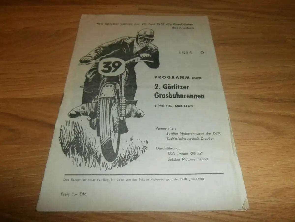 Grasbahn , Görlitz 8.05.1957 , 2. Grasbahnrennen , Speedway , Programmheft / Programm / Rennprogramm , program !!!