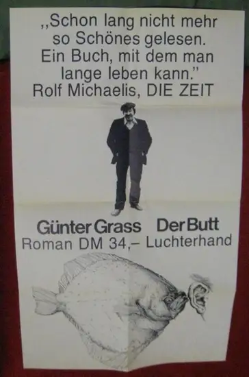 Grass, Günter: Der Butt. - Verlagsplakat zum Roman mit einem Zitat von Rolf Michaelis ( Die Zeit ): ' Schon lang nicht mehr so Schönes gelesen. Ein Buch, mit dem man lange leben kann. *.