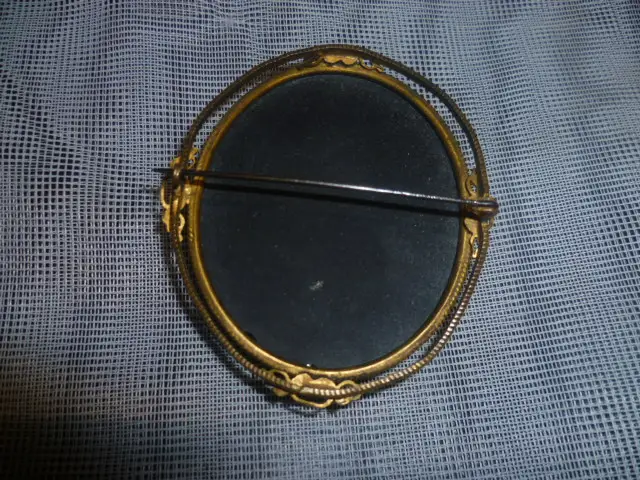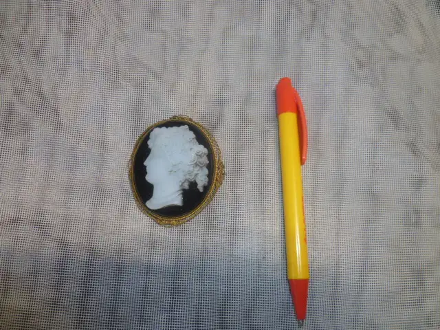 Große viktorianische Brosche - Gemme besetzt mit einem Onyx und einem geschnitztem Speckstein,