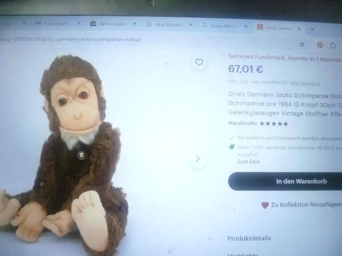 Fun Vintage Mohair Plüsch Grisly Germany Jocko style Schimpanse