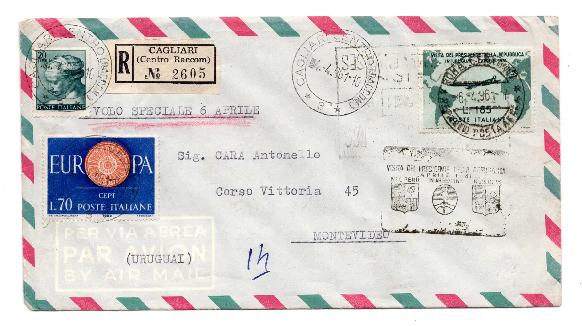 - Gronchi Lire 185 Nr. 919 + Ergänzungen Nr. 896 + 903 auf Aerogramm Racc. nach Buenos Aires mit Präsidentenflug vom 6.4.61 - Kat. Euro 70 n. 1030/A