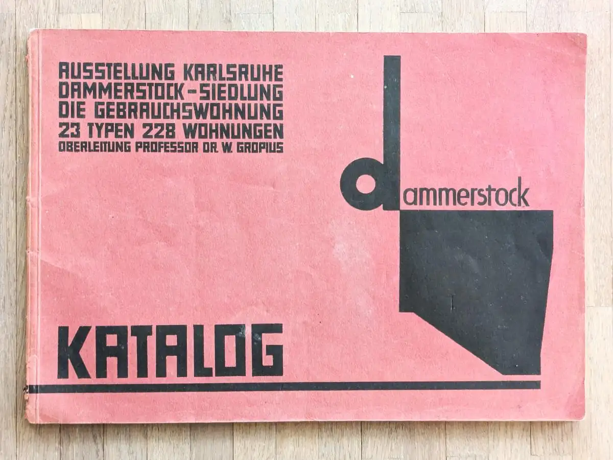 Titel: Ausstellung Karlsruhe, Dammerstock-Siedlung: Die Gebrauchswohnung. Veranstaltet von der Landeshauptstadt Karlsruhe vom 29. September bis zum 27. Oktober 1929. 23 Typen, 228 Wohnungen. Oberleitung Professor Dr. W. Gropius.