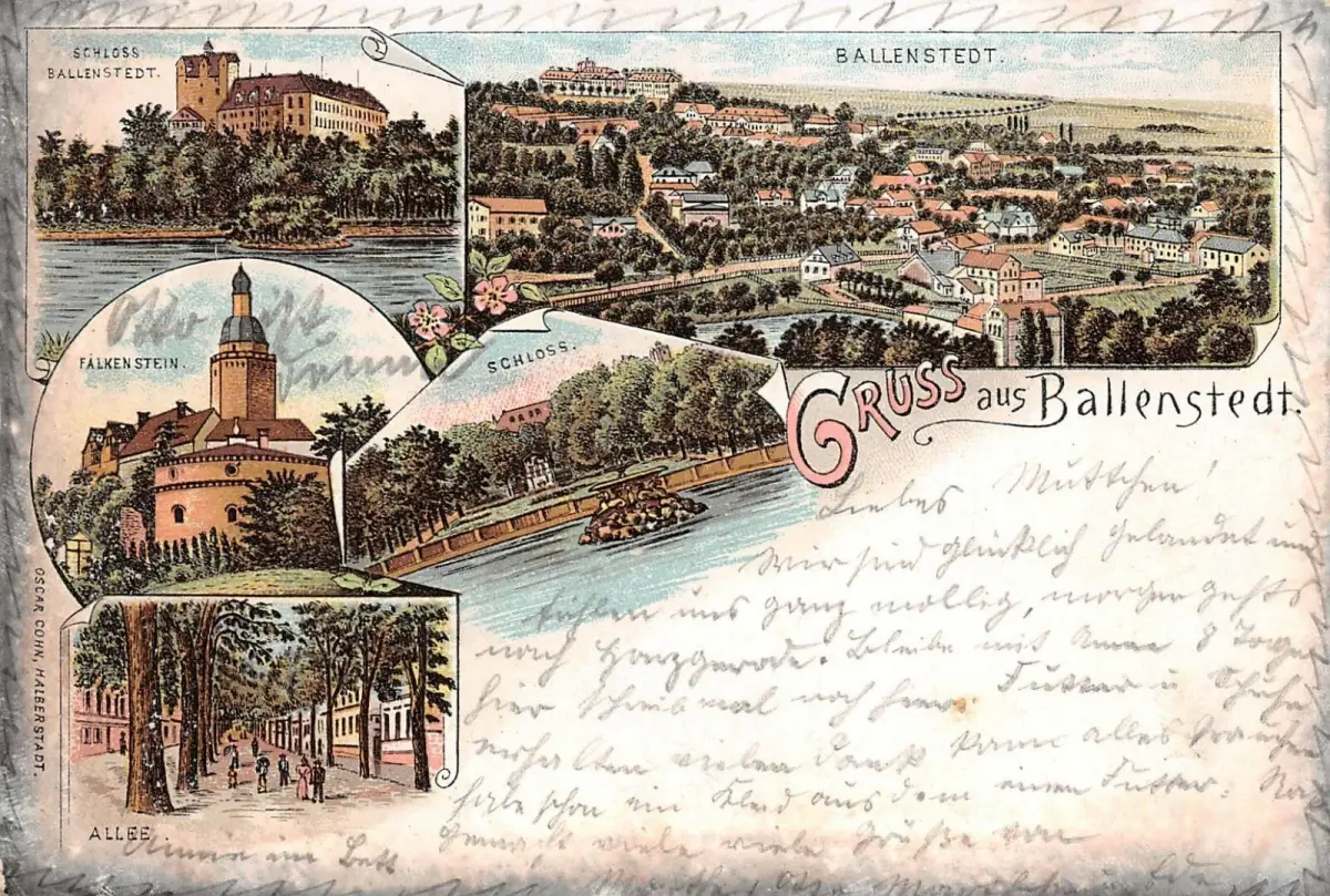 Gruss aus Ballenstedt Schloss Ballenstedt Allee Falkenstein Litho AK