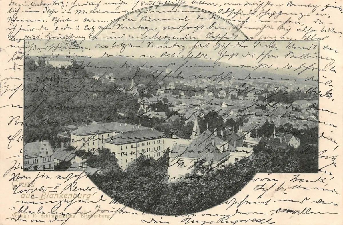 Rückseite: gelaufen 1900 von Blankenburg nach Quedlinburg