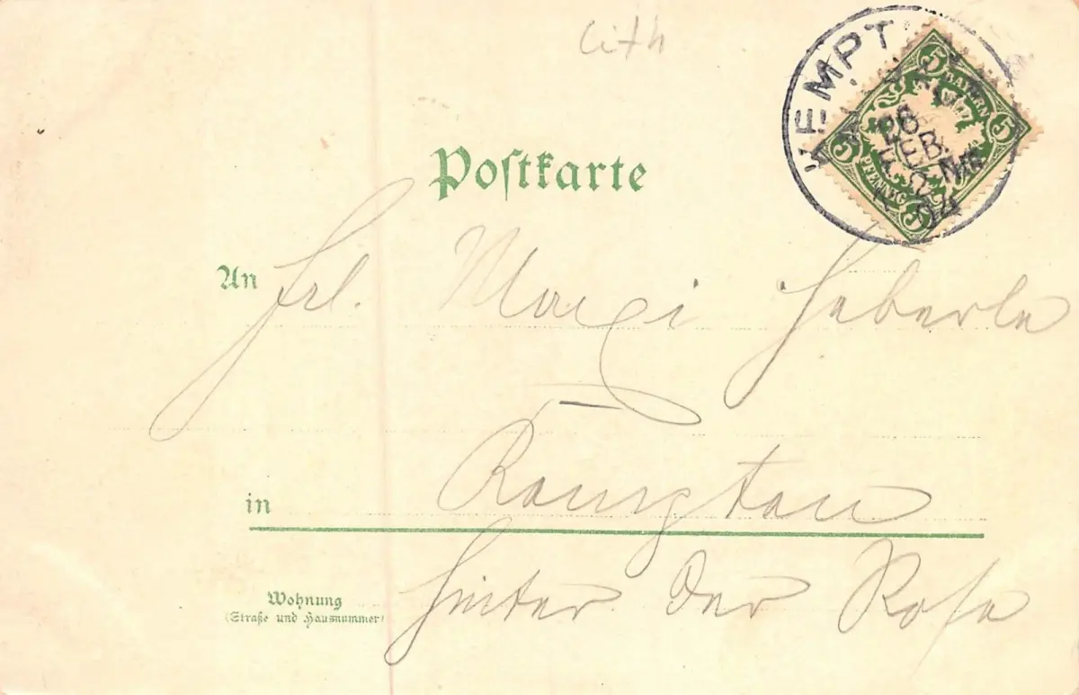Rückseite: gelaufen 1904 von Kempten