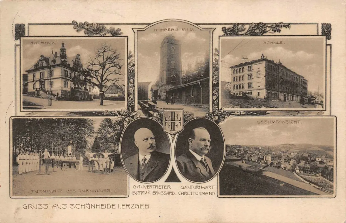 Gruss aus Schönheide i. Erzgeb. Gesamtansicht Schule Rathaus Feldpost AK 1915