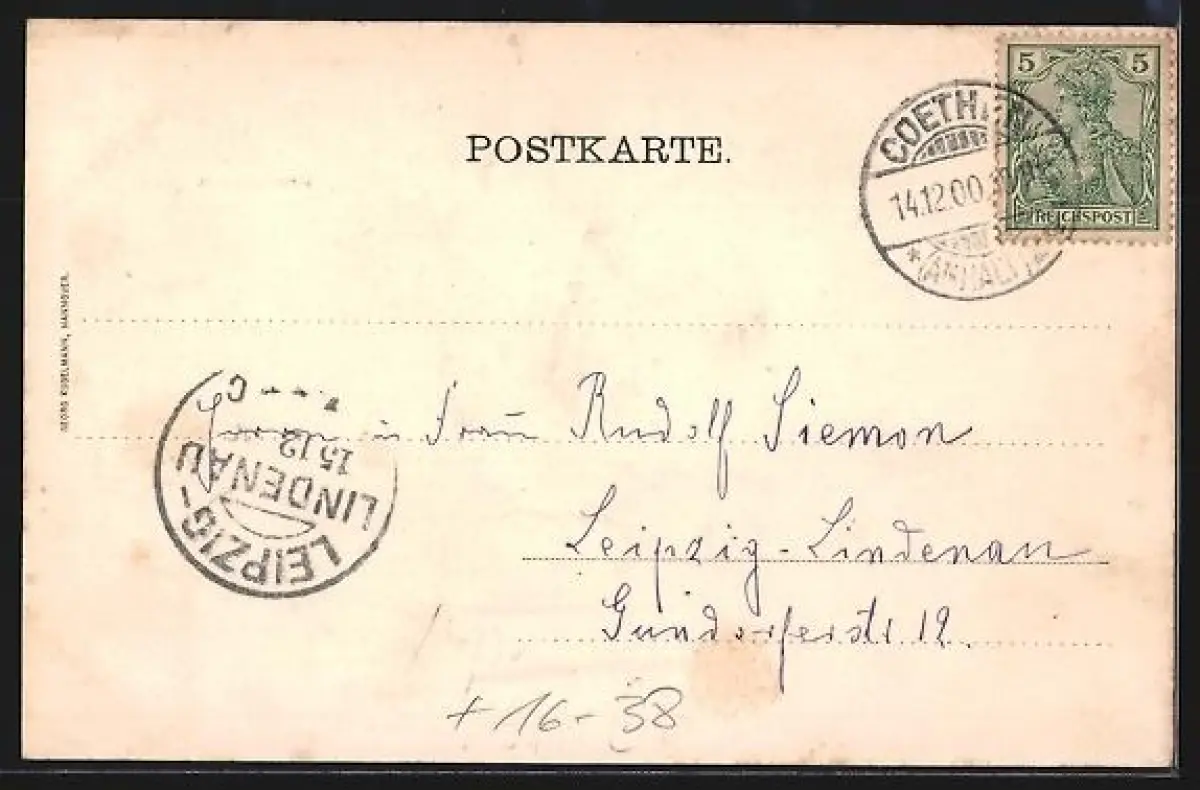 alte Ansichtskarte, gelaufen 1900, guter Zustand