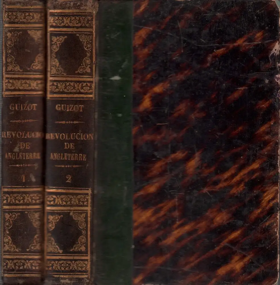 Behandelt die englische Geschichte 1623-1649.- F. P. G. Guizot (1787-1874), französ. Historiker u. Politiker, war der führende Staatsmann des "juste milieu". Er wurde 1854 Präsident der Académie des Sciences Morales et Politiques. In der reformierten Kirche Frankreichs vertrat er starrste Orthodoxie. - Einbände mäßig beschabt; Bd. 1 mit Löchlein im Vortitel; stellenw. braunfleckig bzw. wasserrandig