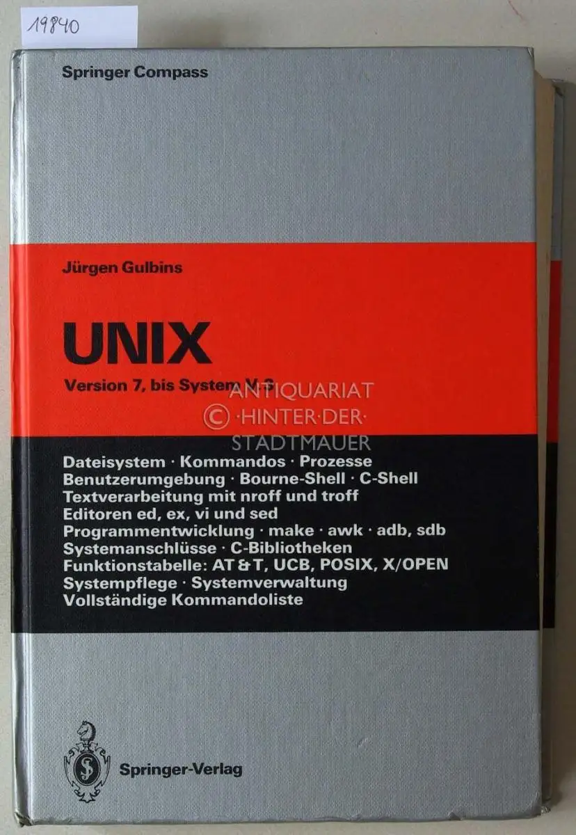 Gulbins, Jürgen: UNIX. Eine Einführung in die Begriffe und Kommandos von UNIX - Version 7, bis System V.3. [= Springer Compass].