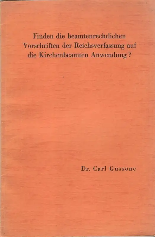 Gussone, Carl: Finden die beamtenrechtlichen Vorschriften der Reichsverfassung auf die Kirchenbeamten Anwendung? <Dissertation>.