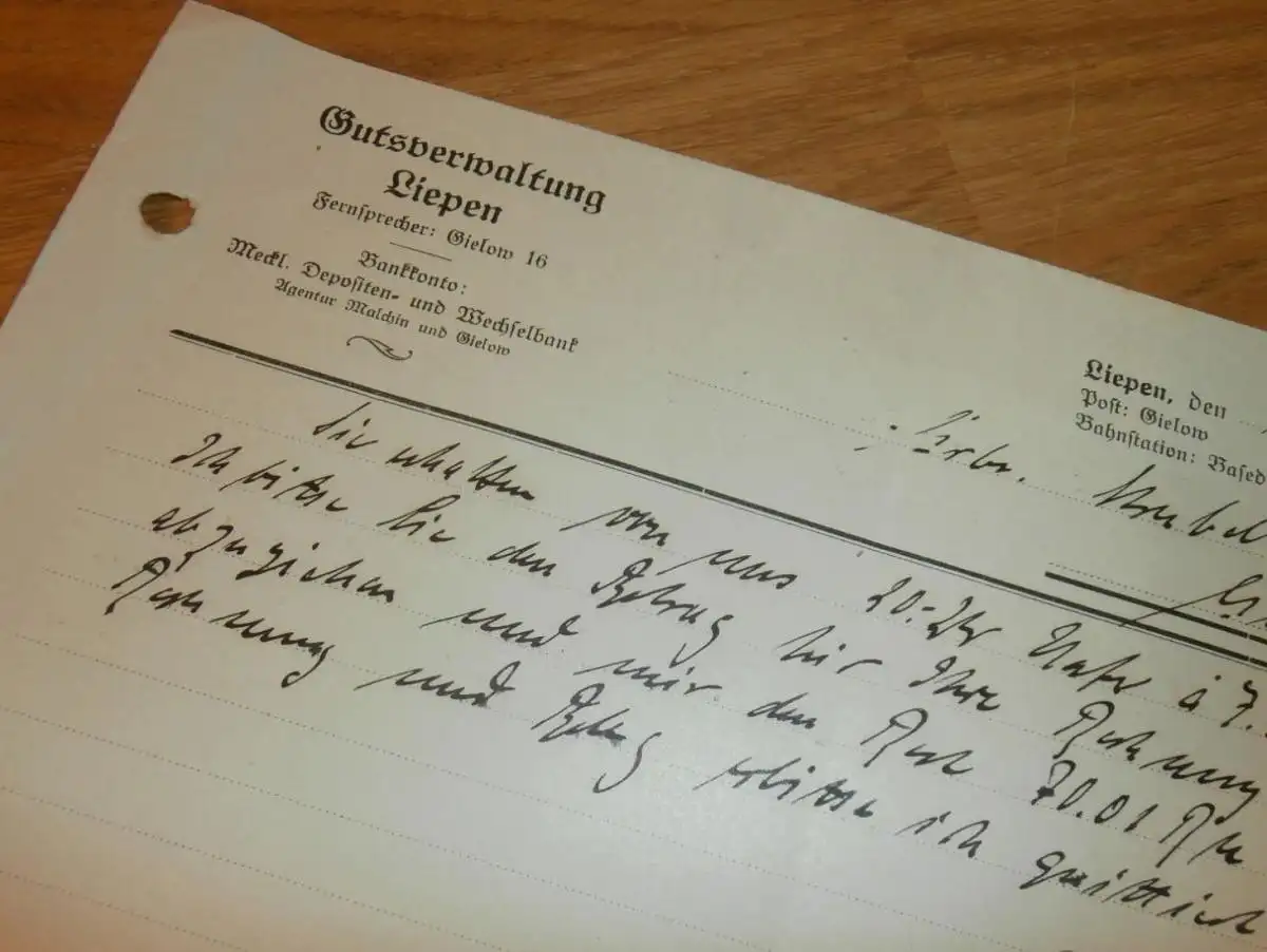 Gutsverwaltung Liepen , 1934 , Mecklenburg , Post Gielow , Bahnstation Basedow , altes Dokument !!AZ9-Z/1