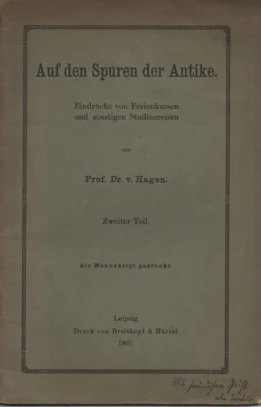 Titel: Auf den Spuren der Antike. Eindrücke aus Ferienkursen und sonstigen Studienreisen. (Zweiter Teil). Als Manuskript gedruckt