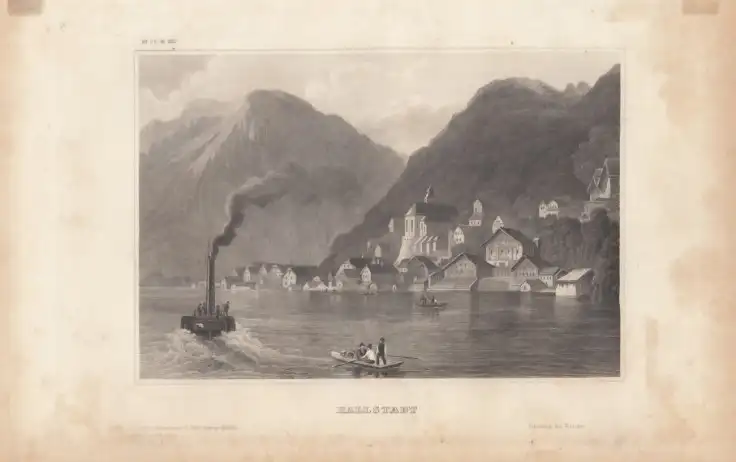 Schlagworte: Originalstahlstich / Hallstadt in Österreich, Weitere Medien, Grafiken, Dekorative Grafik