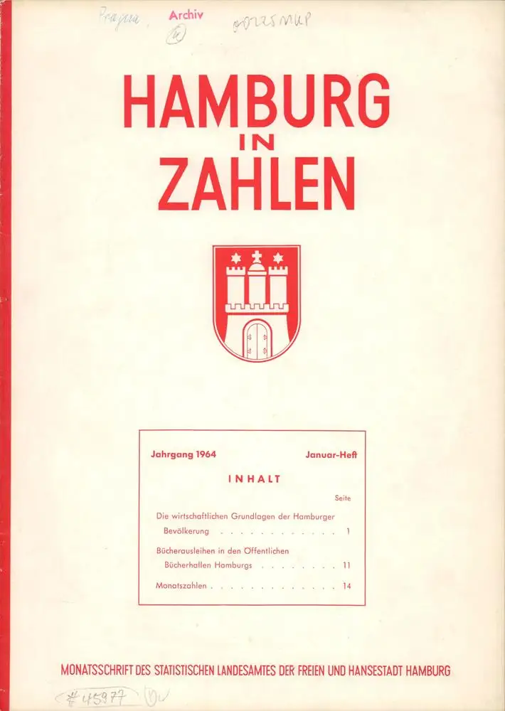 Titel: Hamburg in Zahlen. Monatsschrift des Statistischen Landesamts der Freien und Hansestadt Hamburg. [JG. 18], 1964, Januar-Heft