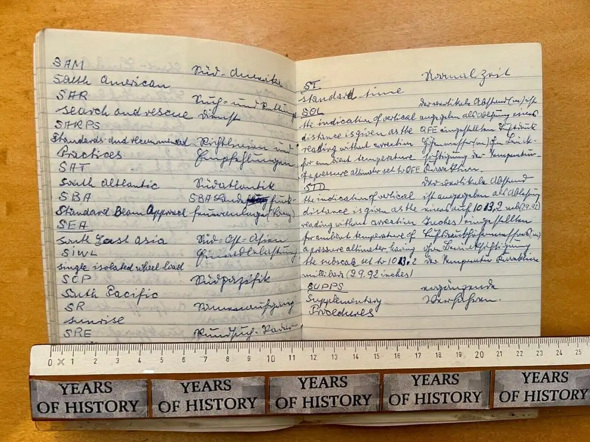 Handschriftliches Tagebuch Sprechfunkverkehr des Flugfunkdienstes Luftfahrt uvm.