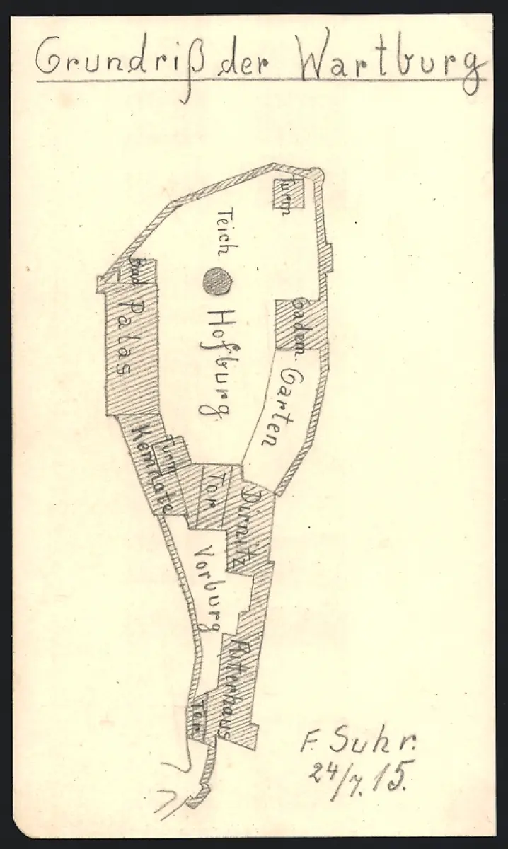 Handzeichnung F. Suhr, Eisenach, Grundriss der Wartburg, 1915