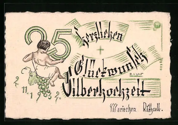Handzeichnung Kind auf Weintrauben, Silberhochzeit 1932