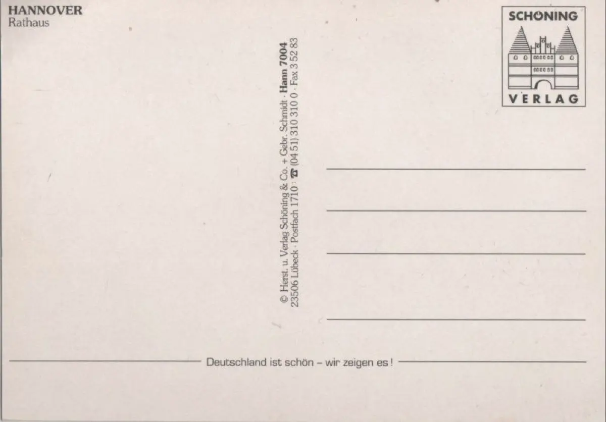 Postleitzahl:30159 (neu) / W 3000 (alt)