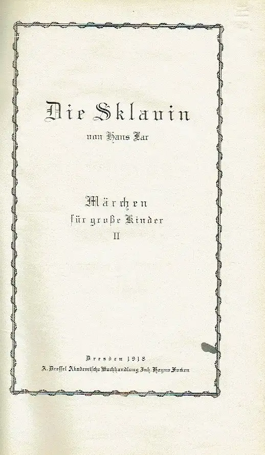 guter Zustand, geringe Gebrauchs- und Alterungsspuren: nachgebunden (war ursprünglich eine Broschüre) - beide Deckel leicht verzogen / gewölbt - Schmutztitel mit altem Besitzernamen und 2 Nummern - Titel mit kleinem Tintenfleck - letzte Textseite mit alter Klebestelle eines kleinen Risses (ohne Textverlust) - Seiten sauber und ordentlich - Seitenschnitt teils minimal fleckig und mit kleinem Kratzer, Herbe aber kraftvolle Lebensauffassung, bilderreiche und leichtfließende Sprache zeichnete den zweiten Band dieser Märchen aus, die in ihrer persönlichen Eigenart in Wirklichkeit so viel bieten, sie man es in dieser geschlossenen Form selten findet. Sie beanspruchen eine besondere Beurteilung der kritischen Leser - zu denen der Verfasser in erster Linie spricht — die hier dankbarsten Lesestoff vorfinden, weil er seinen innersten Gehalt nicht gleich auf den ersten Blick kund gibt. Acht Einzelmärchen umfaßt der zweite Bad. Wer von den großen Kindern mit dem Geschicke hadert, wer von des Lebens Tücken gepackt wurde und in stiller Stunde vielleicht an seinen Idealen zweifelt, wer nach guter Zerstreuung sucht, die auch den Geist beschäftigt, der greife zu diesem Märchenbuch für große Kinder. (Börsenblatt für den deutschen Buchhandel: 02.11.1918), Halbleinen, ca. 15 x 23,5, 105 Seiten