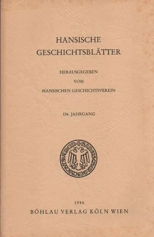 Titel: Hansische Geschichtsblätter. 104. Jahrgang. (u.a.: Edelleute, Hansen, Brügger Bürger. Die Finanzierung der westeuropäischen Preußenreisen im 14. Jahrhundert. Von Werner Paravicini (Kiel))