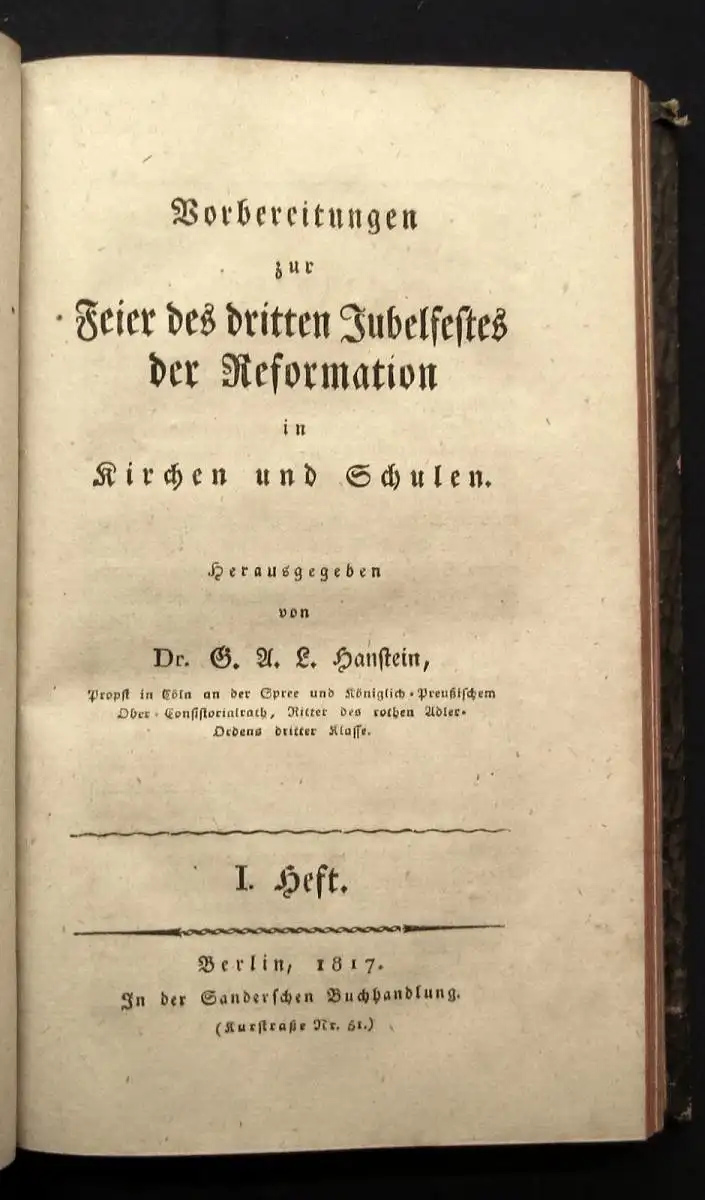 1. Heft Vorbereitungen zur Feier des dritten Jubelfestes der Reformation in Kirchen und Schulen- Erster Abschnitt Verordnungen und Erlasse der geistlichen Oberbehörde