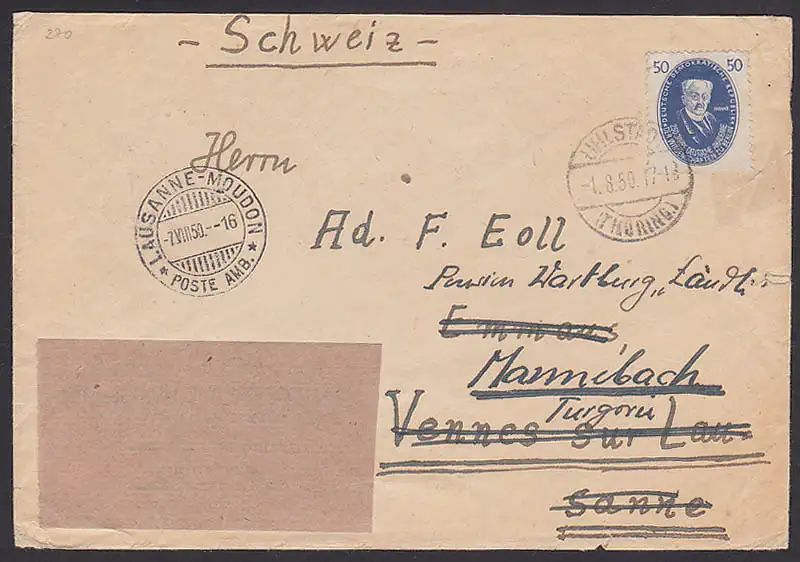 Harnack 50 Pfg Akademie Berlin (270) Auslandsbrief aus Uhlstädt (Thüringen) nach Schweiz