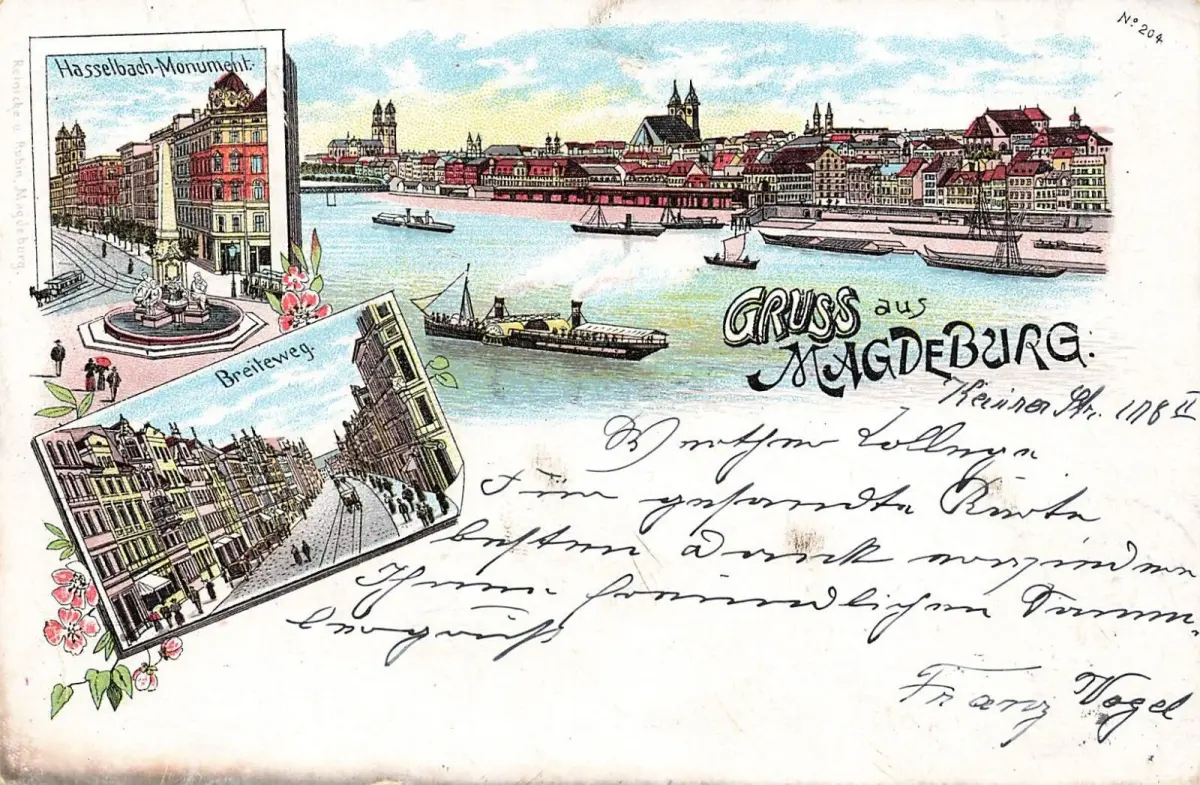 Hasselbach-Monument und Breiteweg Magdeburg Litho Sachsen-Anhalt AK 1899