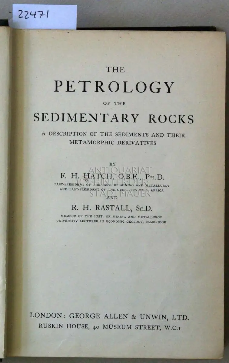 Hatch, F. H. and R. H. Rastall: The Petrology of the Sedimentary Rocks. A description of the sediments and their metamorphic derivatives.