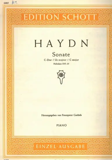 Haydn, Joseph: Sonate. C-Dur / Ut majeur / C major. Hoboken XVI: 35. Herausgegeben von Franzpeter Goebels. Piano. [= Edition Schott 0485] Mainz, B. Schott's Söhne, (1968).