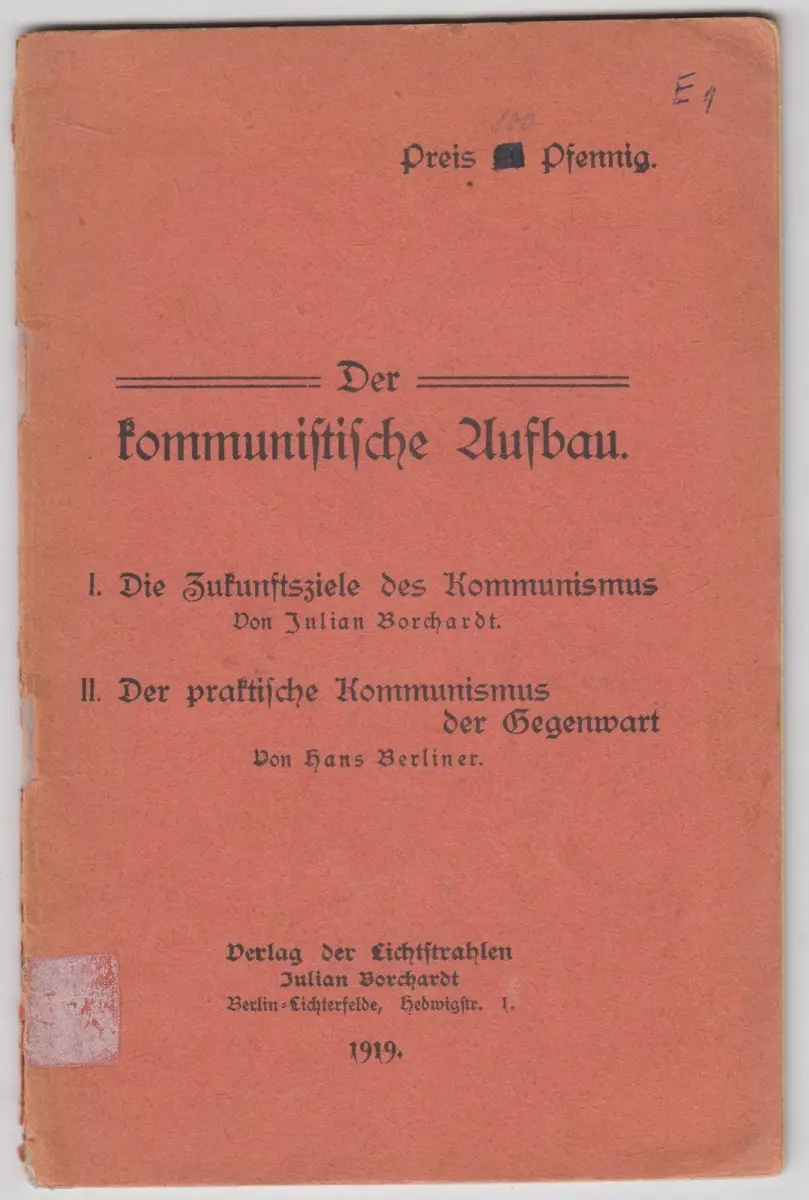 Verlag der Lichtstrahlen, 1919. 36 Seiten 21,5 x 14,5 cm, Heft mit Drahtklammerheftung
