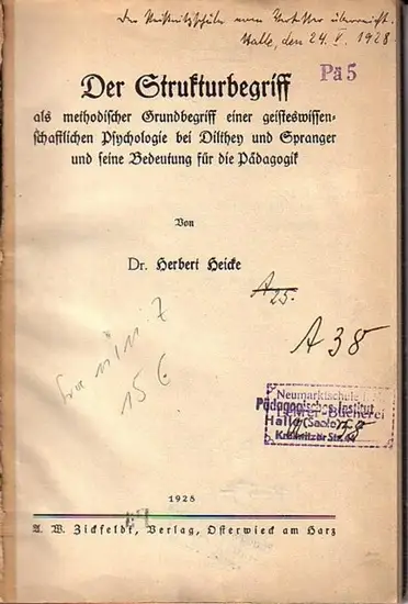 Heicke, Herbert: Der Strukturbegriff als methodischer Grundbegriff einer geisteswissenschaftlichen Psychologie bei Dilthey und Spranger und seine Bedeutung für die Pädagogik.