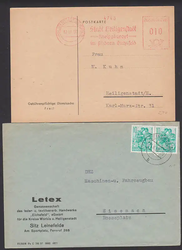 Heiligenstadt (Eichsfeld) AFS Stadt Heilgenstadt als Ortskarte, Leinefelde 10 Pfg. Fnfjahrplan